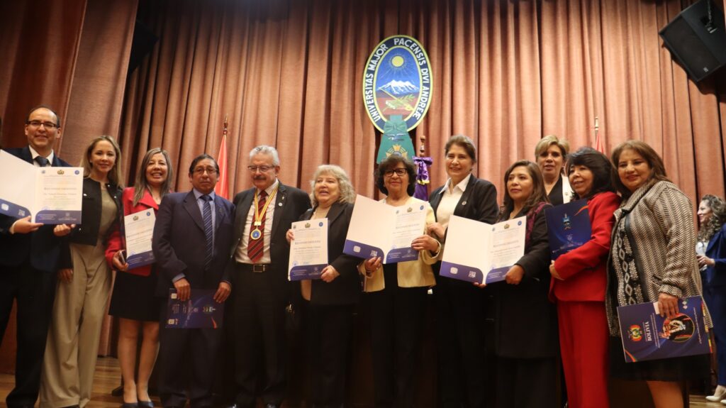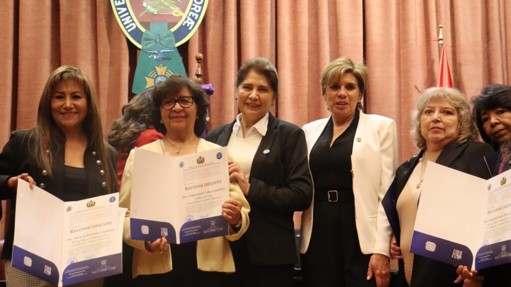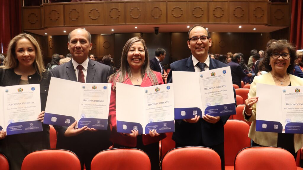 El acto cont贸 con la presencia de autoridades nacionales y universitarias, entre ellas la Rectora Ph.D. Mar铆a Eugenia Garc铆a Moreno, el Vicerrector Dr. Tito Est茅vez Martini, la Presidenta del CDBFLP Dra. Tania S谩nchez Vedia, la Decana de la Facultad Dra. Carolina Montenegro Reynaga y la Vicedecana Dra. Katiuska Gonz谩lez Gandarillas.