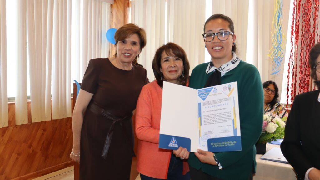 Asimismo, la Dra. Katituska Gonzales Gandarillas, Vicedecana de la Facultad de Ciencias Farmacéuticas y Bioquímicas – UMSA, junto a la Dra. Sussana Revollo Zepita, Directora del Instituto SELADIS reconocieron el compromiso y dedicación de docentes, consultores, internos, pasantes y personal administrativo del Instituto SELADIS, quienes con su trabajo fortalecen la calidad del servicio y la investigación científica